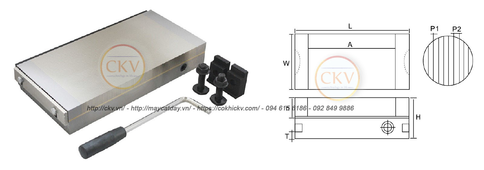 Cũng giống các loại bàn hút từ khác, có đa dạng kích thước để phủ hợp với hành trình làm việc của máy, mỗi loại kích thước sẽ có tải trọng khác nhau để sử dụng với các chi tiết, phôi khuôn có kích thước linh động.