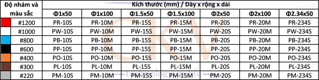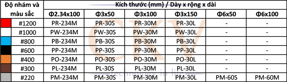 Danh sách các loại đá mài tại CKV VIETNAM : Đá mài khuôn mẫu