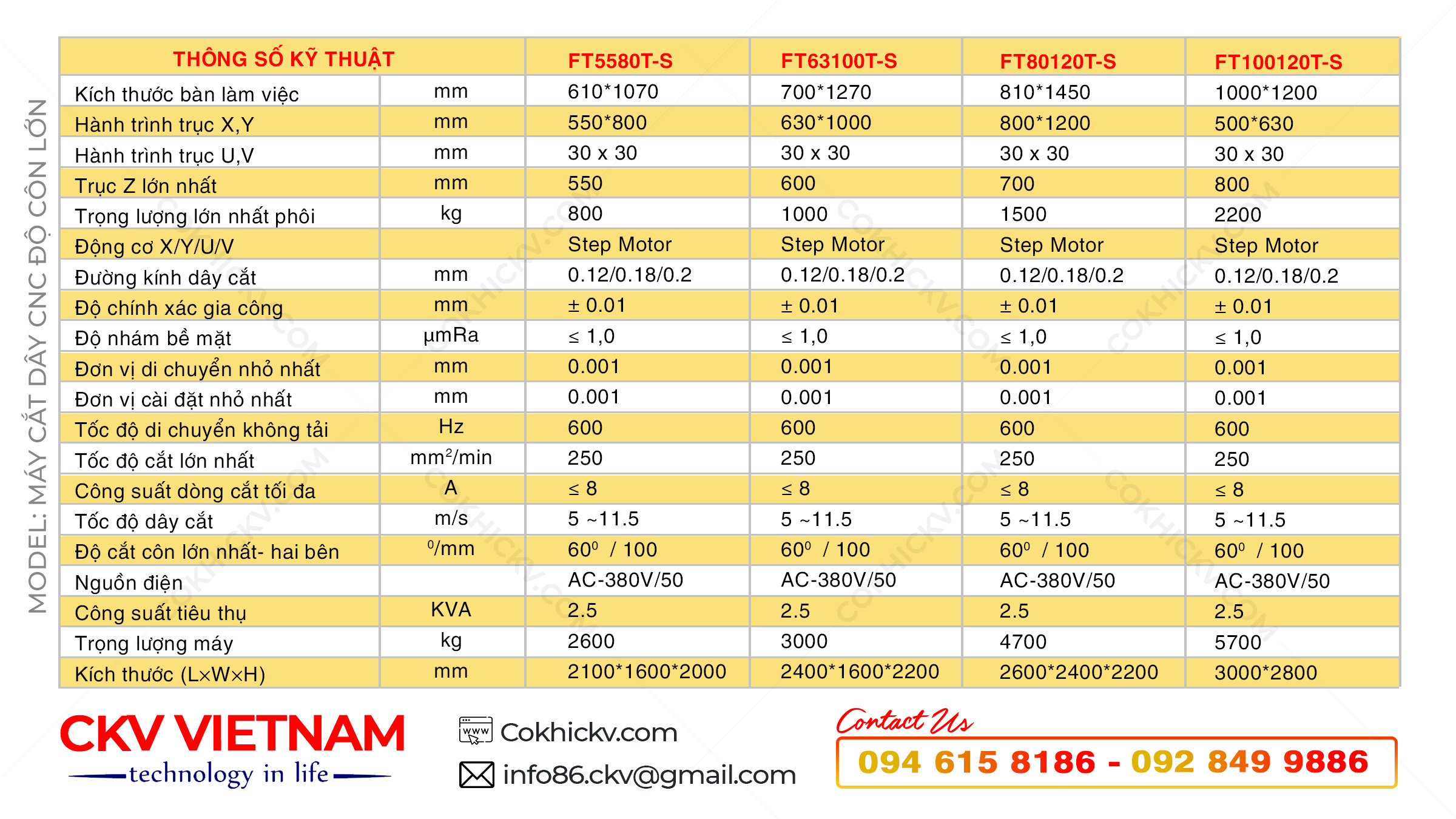 Máy cắt dây CNC độ côn lớn khổ: 55x80,63x100,80x120,100x120 cm
