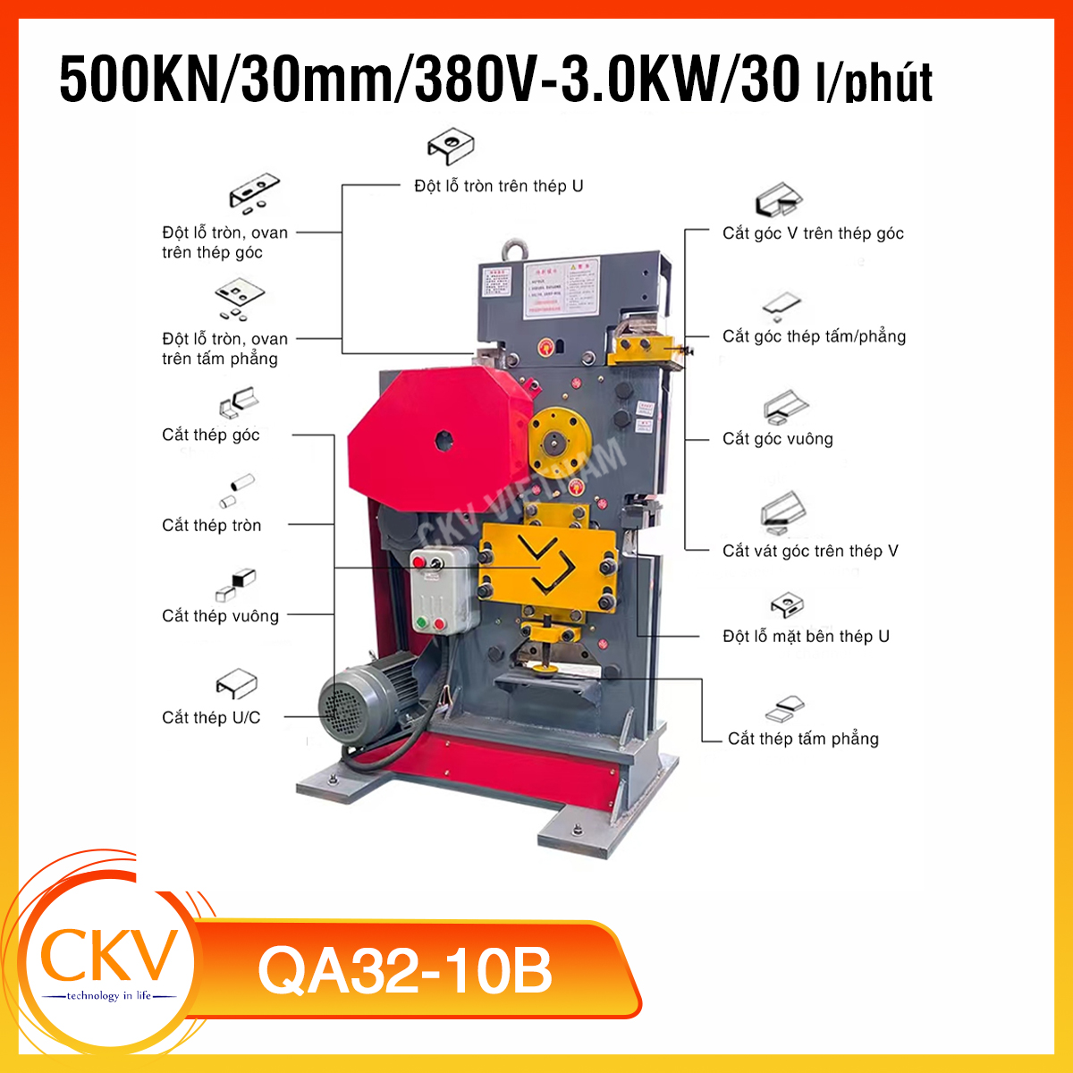QA32-10B là dòng máy cắt đột liên hợp được CKV VIETNAM nhập khẩu & phân phối với nhiều công dụng bao gồm đột lỗ, cắt, chấn thép.