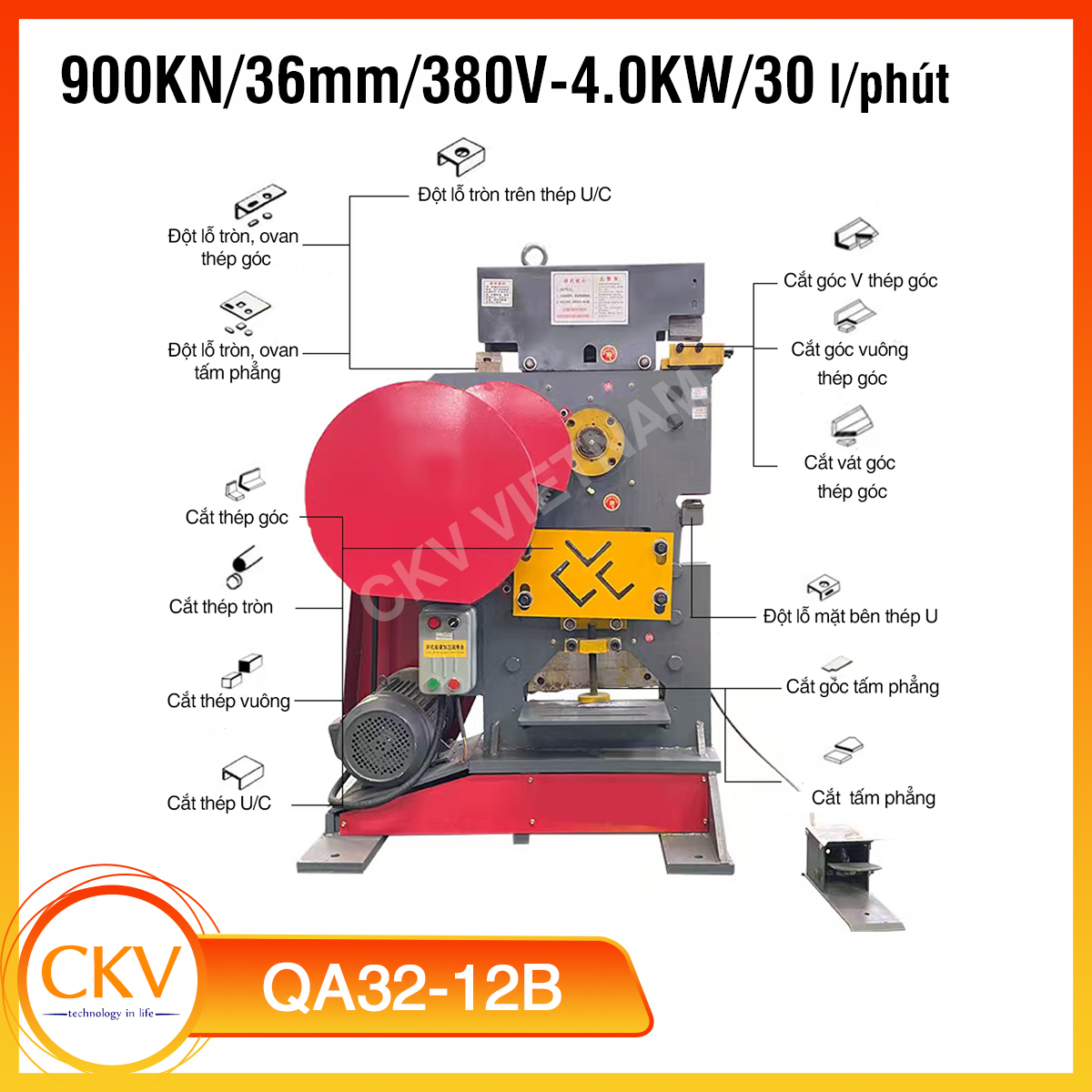 QA32-12B là dòng máy cắt đột liên hợp được CKV VIETNAM nhập khẩu & phân phối với nhiều công dụng bao gồm đột lỗ, cắt, chấn thép.