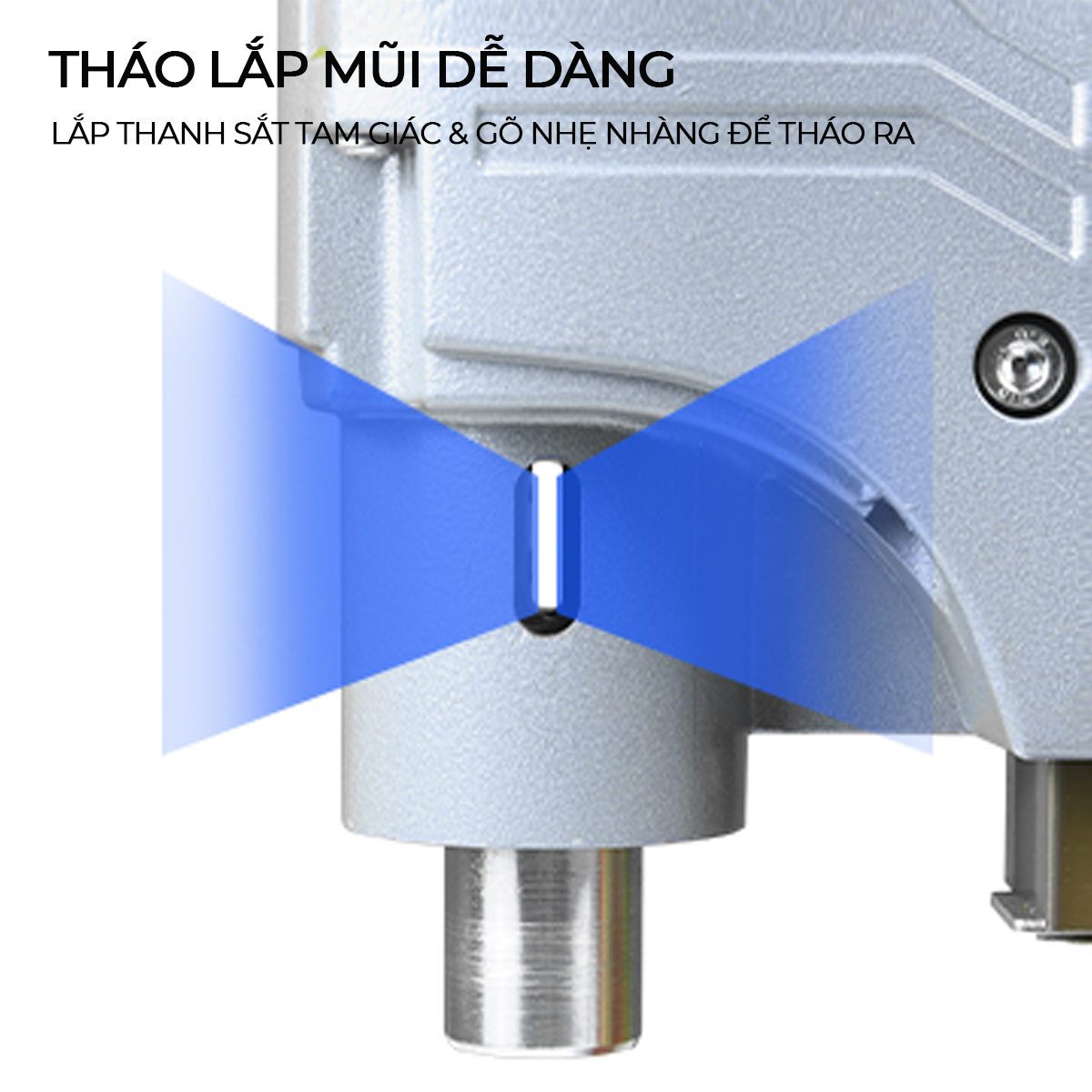 6/ Trục hành trình dài, cho phép mũi khoan được sâu.