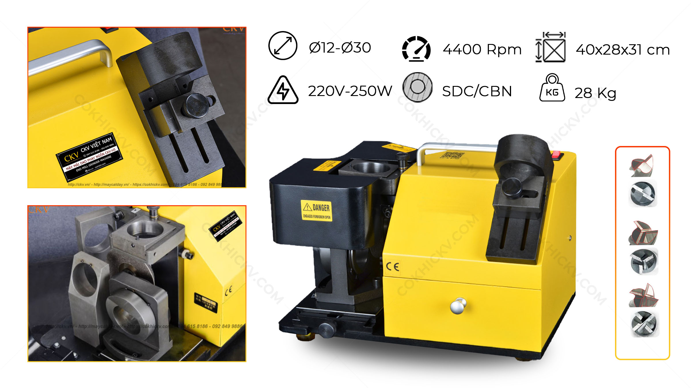 CKV - H5 là dòng máy mài dao phay ngón chuyên dụng có phổ mài lớn, thuộc phân khúc phổ thông. CKV - H5 thường được sử dụng trong các nhà máy, xưởng chế tạo có quy mô lớn. Sản phẩm được CKV VIETNAM nhập khẩu & phân phối với những đặc điểm như: