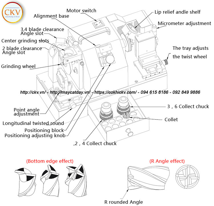 | Kích thước mài dao phay R | R0.5, R1, hoặc R1.5, R2, hoặc R0.3, R0.5, R0.8, R1 | ||||