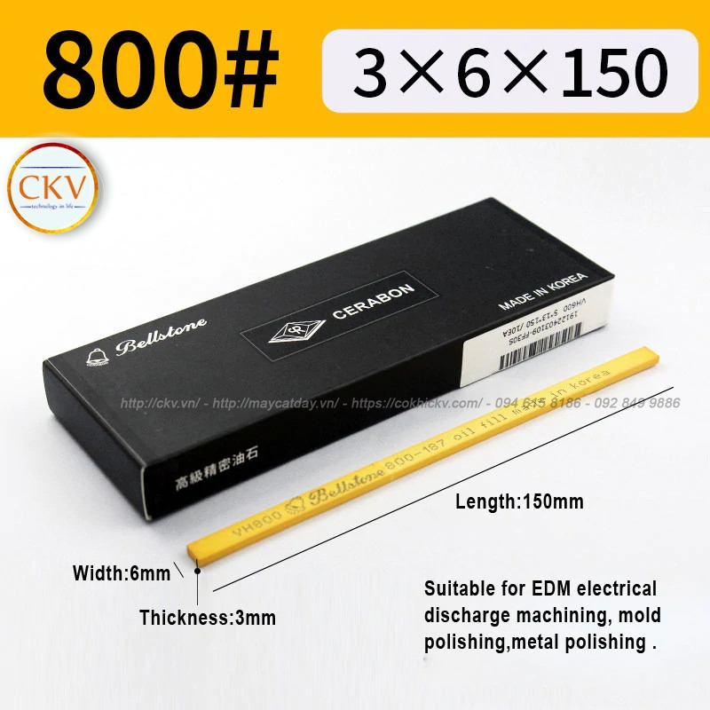 Thanh đá mài dầu cao cấp chính hãng Bellstone Hàn Quốc 3x6x150 #800